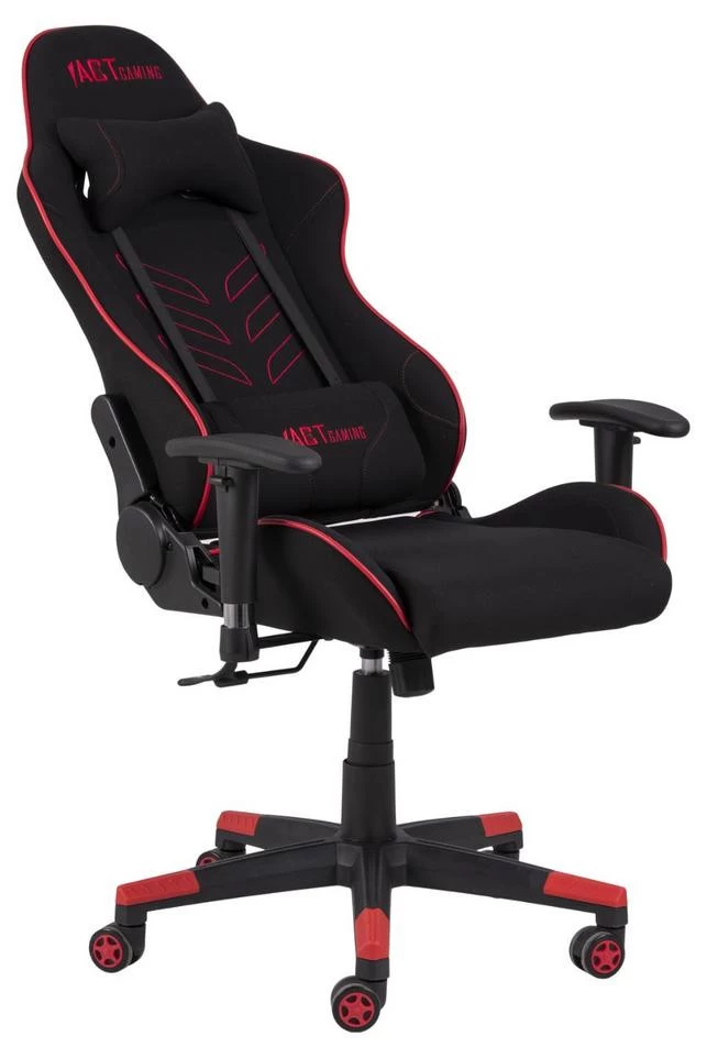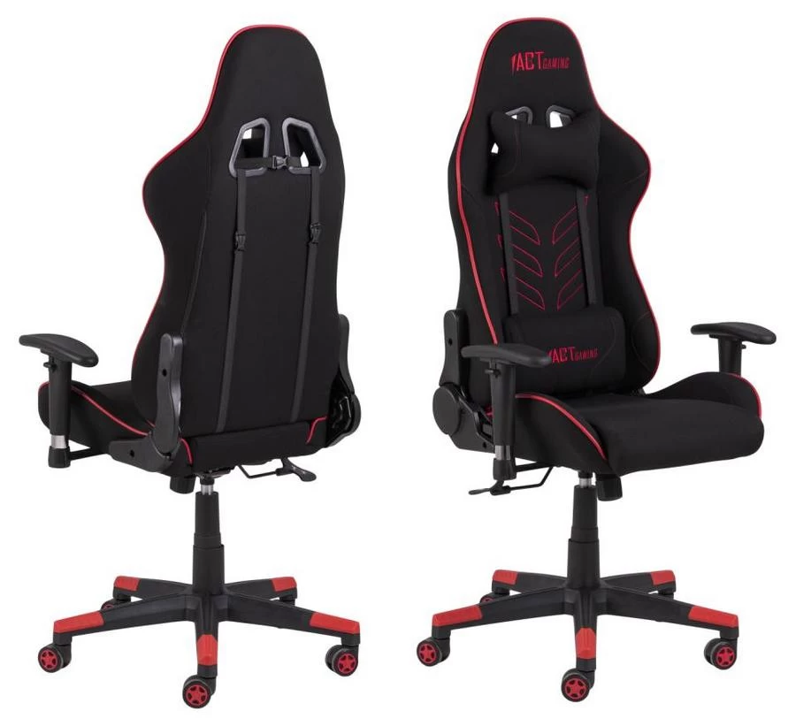 - ACT-logo, verstelbare armleuning, remwielen, gasveer, rode contrasterende stiksels, draaibaar, kantelbaar