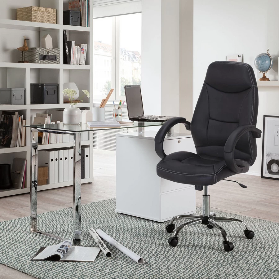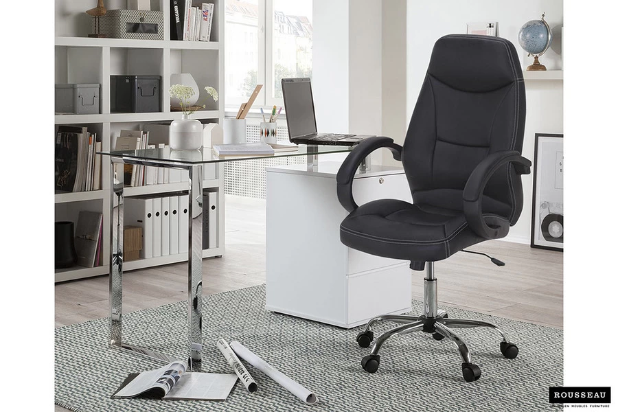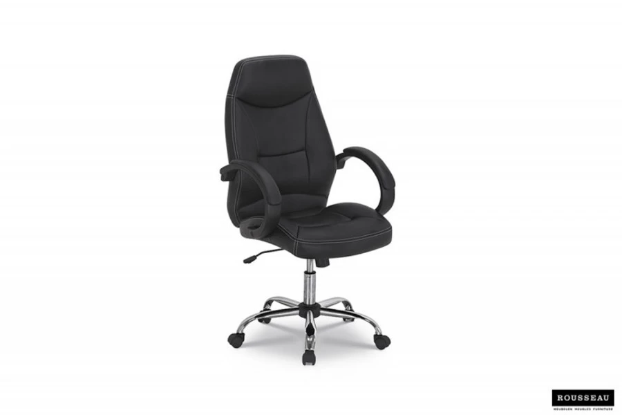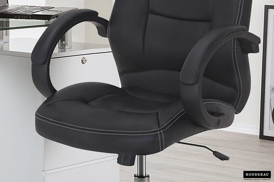 Bureaustoel ‘Clever’ PU Zwart. De poten zijn zowel van metaal als plastiek & de bekleding is vervaardigd uit PU.