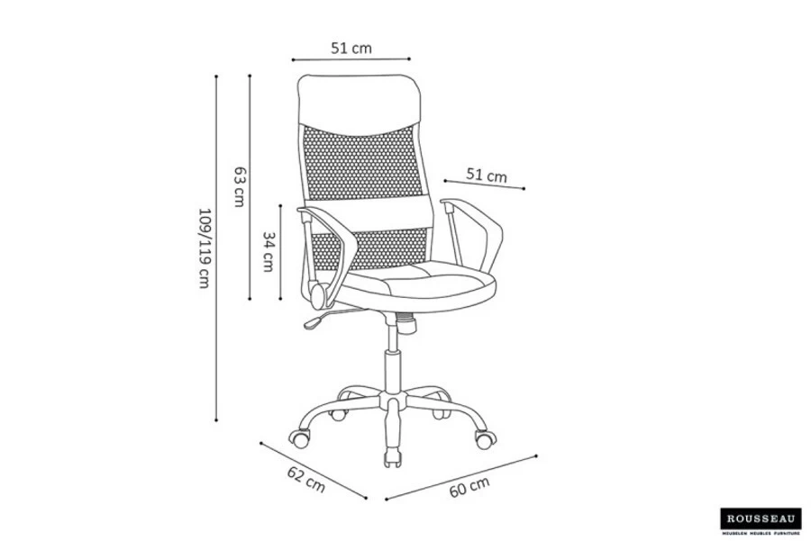 - Afmetingen (h x l x d): 109/119 x 60 x 62 cm