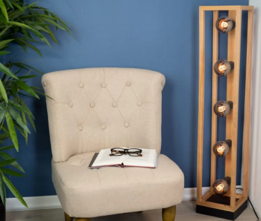 De Blackcrown houten vloerlamp van EGLO is makkelijk te verplaatsen naar de plek waar je meer licht of sfeer nodig hebt. Er wordt geen lichtbron meegeleverd bij de lamp, waardoor je zelf kan bepalen wat de lichtsterkte van de lamp kan worden. De lamp heeft vijf lichtbronnen met een E27-fitting nodig.