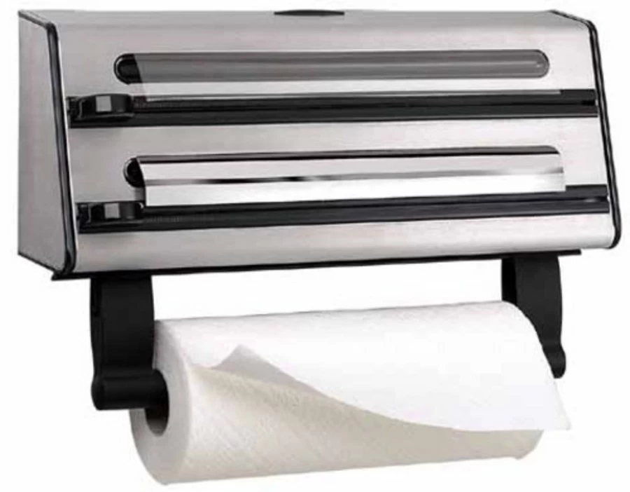Superhandig! Met deze EMSA Superline-keukenrolhouder berg je al je folies en keukenpapier slim op. Biedt ruimte aan een keukenrol en een rol aluminiumfolie en vershoudfolie. Dankzij het geïntegreerde mesje kan je de folies eenvoudig snijden. De houder bestaat uit 3 delen en is aan de wand te bevestigen.