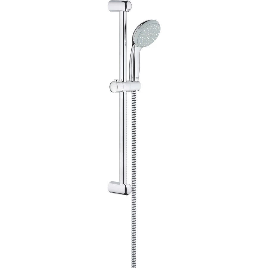 Deze doucheset uit de GROHE New Tempesta 100 mm serie bestaat uit een handdouche, een glijstang en een doucheslang. Zonder het douchegenot te verminderen zorgt GROHE EcoJoy er toch voor dat je op je verbruik bespaart. Het verbruik is maximaal 5,7 l/min wat heel prettig is voor het milieu én voor je portemonnee. De douche heeft twee straalsoorten; de zomerse regenbui van de Rain straal of de krachtige Jet straal die je huid stimuleert. Beiden voelen altijd perfect aan omdat GROHE DreamSpray zorgt voor een juiste waterverdeling door elk sproeigaatje. Ook het onderhoud voelt goed. Dat is namelijk nauwelijks nodig. Om de chromen GROHE StarLight beschermlaag af te nemen is een zachte doek voldoende. Een jarenlange glans is dan gegarandeerd. En dankzij SpeedClean krijgt kalk geen kans.