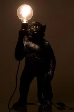 Deze zwarte lamp in de vorm van een aap is een leuk functioneel item voor in jouw interieur.