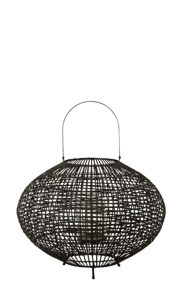 J-Line Lantaarn Rattan/Metaal op Voet 61x61x48.5 cm – Zwart