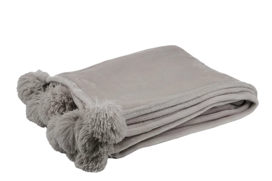 J-Line Plaid Pompom Taupe 130×170 Cm Polyester