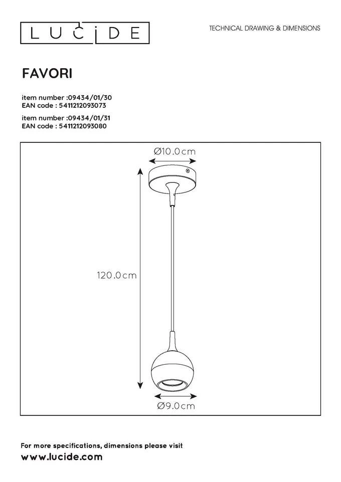 Wordt deze hippe hanglamp jouw nieuwe Favori? Zet een kunstwerk in de spotlight, belicht je salontafel of dompel je aanrecht onder in sfeer. Favori is flexibel in gebruik. De hangende lamp is in hoogte verstelbaar zodat jij de juiste setting in huis creëert. De lichtbron zit verwerkt in een afgevlakte bol die bovenaan overgaat in een messing aansluiting op de kabel. Favori is relatief klein met een diameter van 9 centimeter en kan van 50 tot maximaal 120 centimeter opgehangen worden.