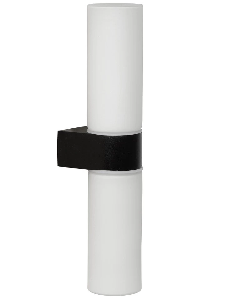 Het licht schijnt door het hoogwaardig opaalkleurige glas van de cilindervormige kap. Tussen de lichtbronnen zit een elegante, zwarte metalen voet waarmee je Jesse aan de muur bevestigt.
