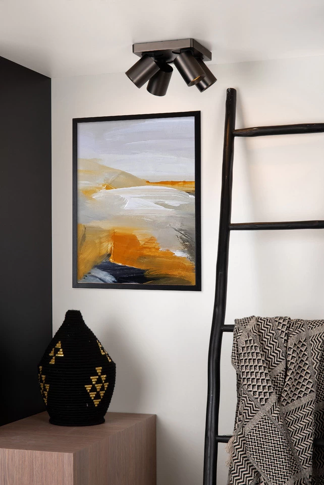 Dit is Nigel, een plafondspot compatibel met vier GU10 dim to warm ledlichtbronnen. Deze geven licht van 2200 tot 3000k. Een eenvoudig en tijdloos ontwerp met een cilindervormige lampenkap zodat de spot zich in allerlei interieurstijlen thuis voelt. Nigel is zowel in het zwart als wit beschikbaar. En met verschillende lichtpunten. De witte variant kreeg een accent mee door de binnenzijde van het armatuur in het zwart te kleuren. De plafondspot is gemaakt uit aluminium en is 12 centimeter hoog. Bevestig Nigel aan het plafond, sluit aan op een compatibele dimmer, draai en kantel de spots naar keuze en geniet.