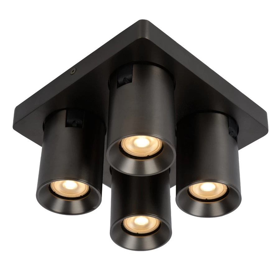 Lucide Nigel Plafondspot Zwart Staal 4x 5W GU10 Dim-to-Warm Lamp