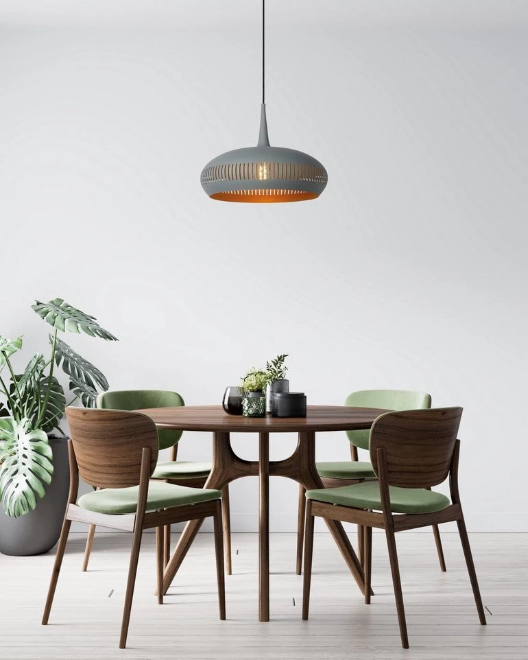 Deze prachtige vintage hanglamp, Rayco genaamd, is heel elegant ontworpen. De lampenkap, vervaardigd uit hoogwaardig staal, heeft een diameter van 45 centimeter en openingen aan de zijkant die de ruimte stijlvol verlichten en zonnestralen op je muren richten. Met een aanpasbare hoogte tussen 60 centimeter en 146,6 centimeter hangt Rayco op zijn plaats in iedere woonkamer, boven je eettafel of in de slaapkamer. Hij is eenvoudig aan te sluiten op een dimmer voor extra sfeer en gezelligheid op ieder tijdstip van de dag.