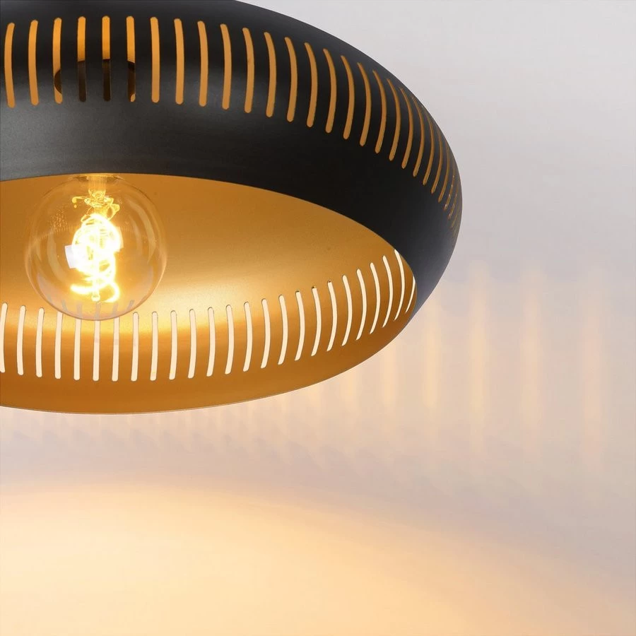 Hou je van vintage of wil je een retro toets aan je interieur toevoegen? Kies dan voor Rayco. Deze halfronde plafondlamp is heel stijlvol ontworpen uit hoogwaardig staal, met een diameter van 45 centimeter en een hoogte van 19 centimeter. Het licht schijnt niet alleen onderaan, maar ook door de open rechthoekige stroken aan de zijkant. De ruimte wordt op een elegante manier verlicht en het licht schijnt zoals zonnestralen op de muren. De Rayco plafondlamp is eenvoudig aan te sluiten op een dimmer zodat je de ruimte van het juiste sfeerlicht kan voorzien.