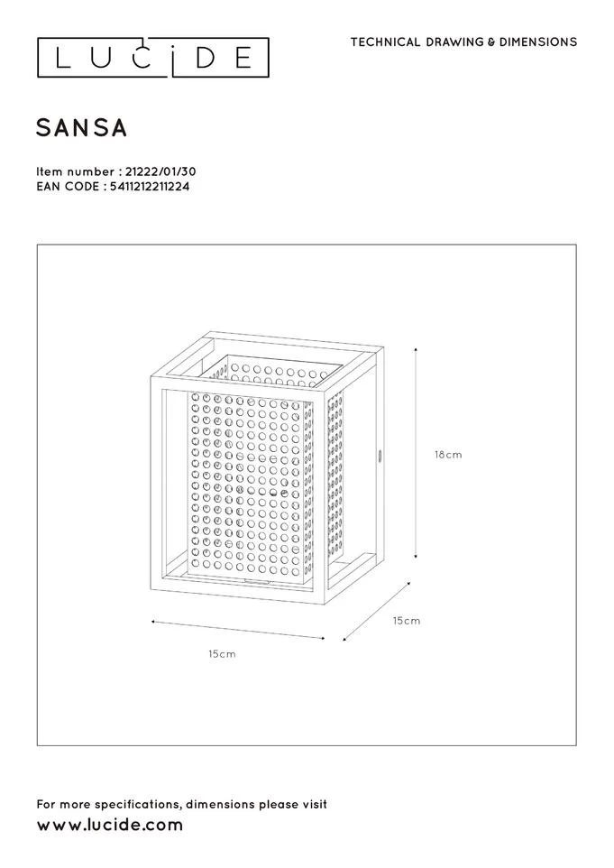 - Afmetingen: L.15 x B.15 x H.18 cm
