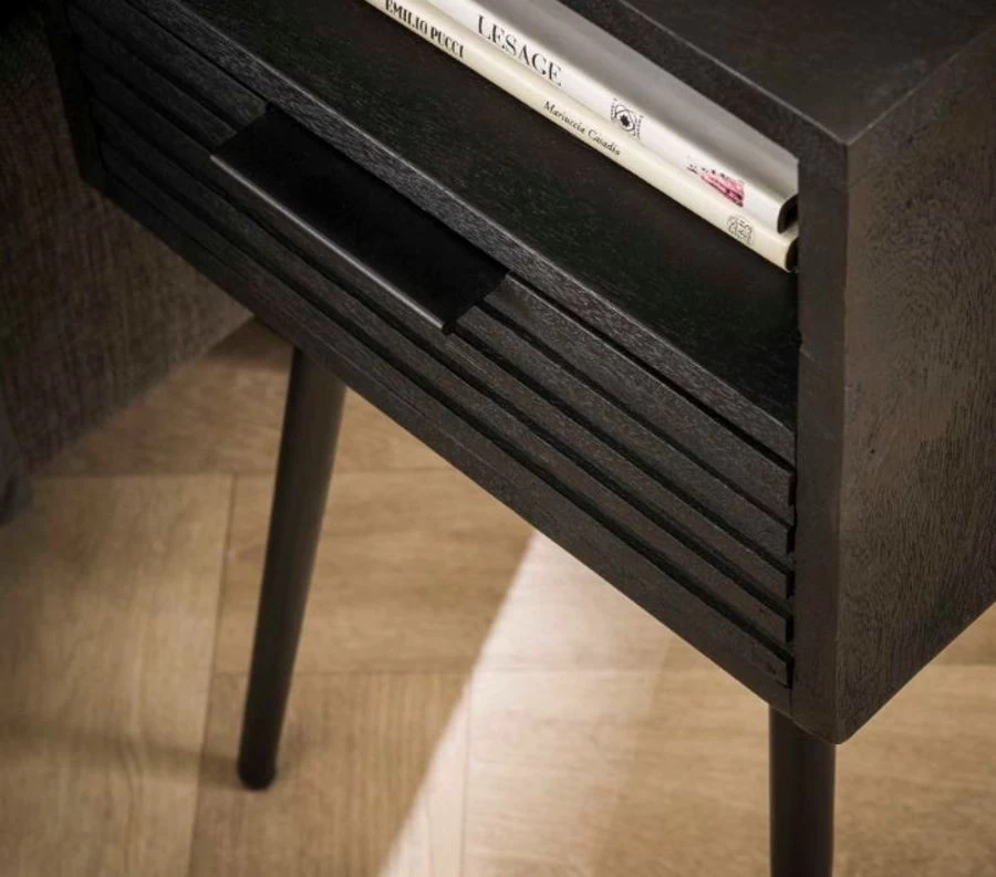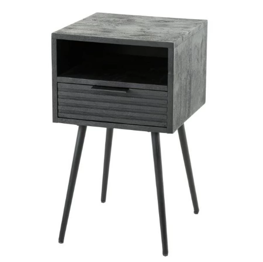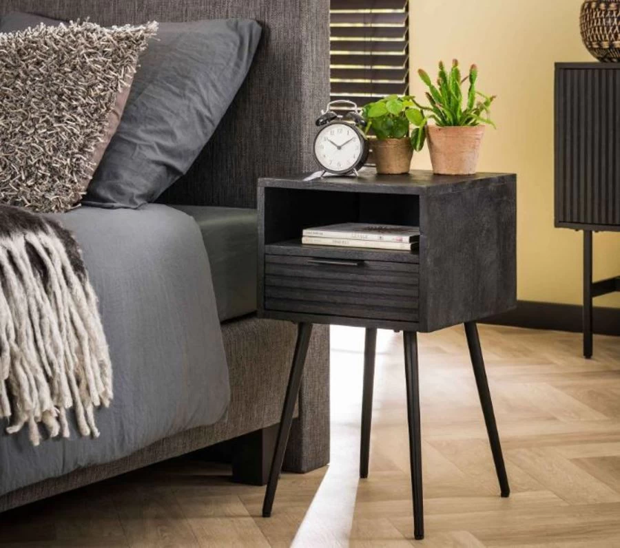 Nachtkast 1lade Massief Mango Zwart