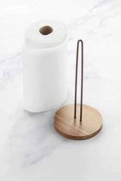 Heb steeds een velletje keukenrol bij de hand met deze keukenrolhouder van Point-Virgule.Het zachte acaciahout en de koper gekleurde houder maken van deze keukenrolhouder een mooi en warm detail in elke keuken.