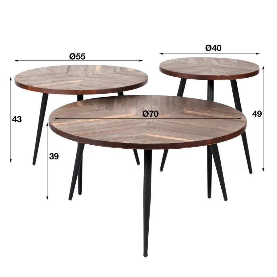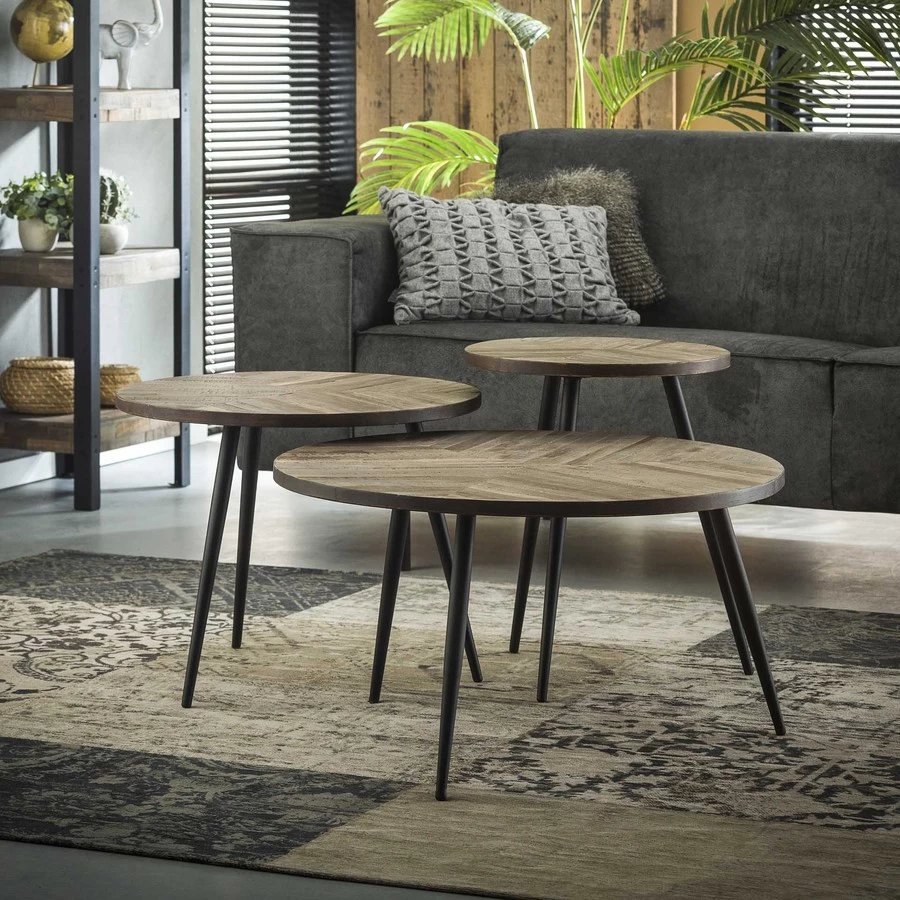 Salontafel – Dia 70cm Set Per 3 Teak Greywash