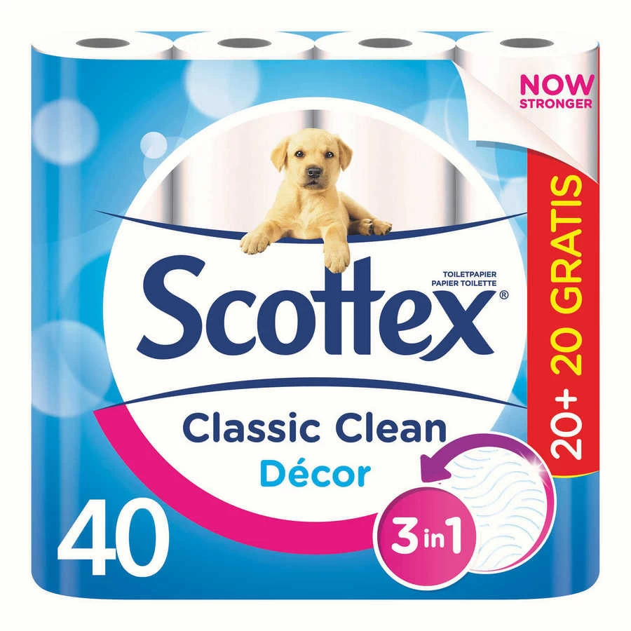 Voor een schoon en hygienisch gevoel gebruik Scottex® Classic Clean toiletpapier. Dankzij de speciale microstructuur geeft het een optimaal gevoel van schoon.