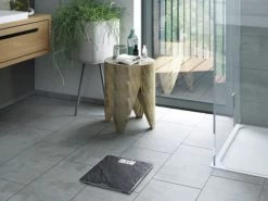 De digitale personenweegschaal Style Sense Compact 300 Slate met zijn stijlvolle leisteenlook is een blikvanger in elke badkamer. Het loopvlak van hoogwaardig veiligheidsglas biedt een comfortabele standaard en kan tot 180 kg dragen. Zodra u op het weegoppervlak stapt, wordt de weegschaal ingeschakeld en wordt uw persoonlijke lichaamsgewicht in stappen van 100 g weergegeven op het gemakkelijk af te lezen LCD-scherm. Na het wegen schakelt hij automatisch uit – dit bespaart energie en maakt het mogelijk om de meegeleverde batterijen lang te gebruiken. Het batterijvak is stevig vastgeschroefd en zorgt zo voor de veiligheid van de kleintjes.