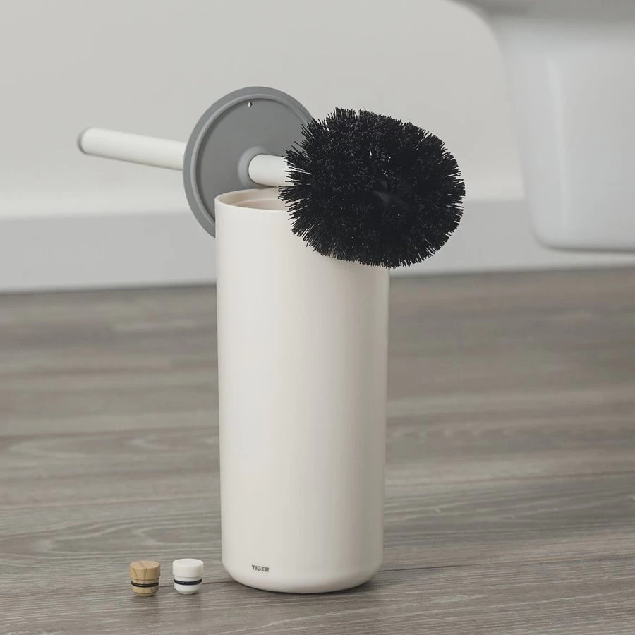 De vrijstaande toiletborstel met houder uit de Urban serie van Tiger is uitgevoerd in de kleur mat wit en grijs en wordt geleverd met drie eindkapjes voor toevoeging aan de steel van de borstel. Deze decor elementen, in de kleur mat wit, licht eiken en grijs, maken het mogelijk een subtiel kleuraccent toe te voegen waardoor het artikel eenvoudig aan te passen is aan de gewenste stijl.Â