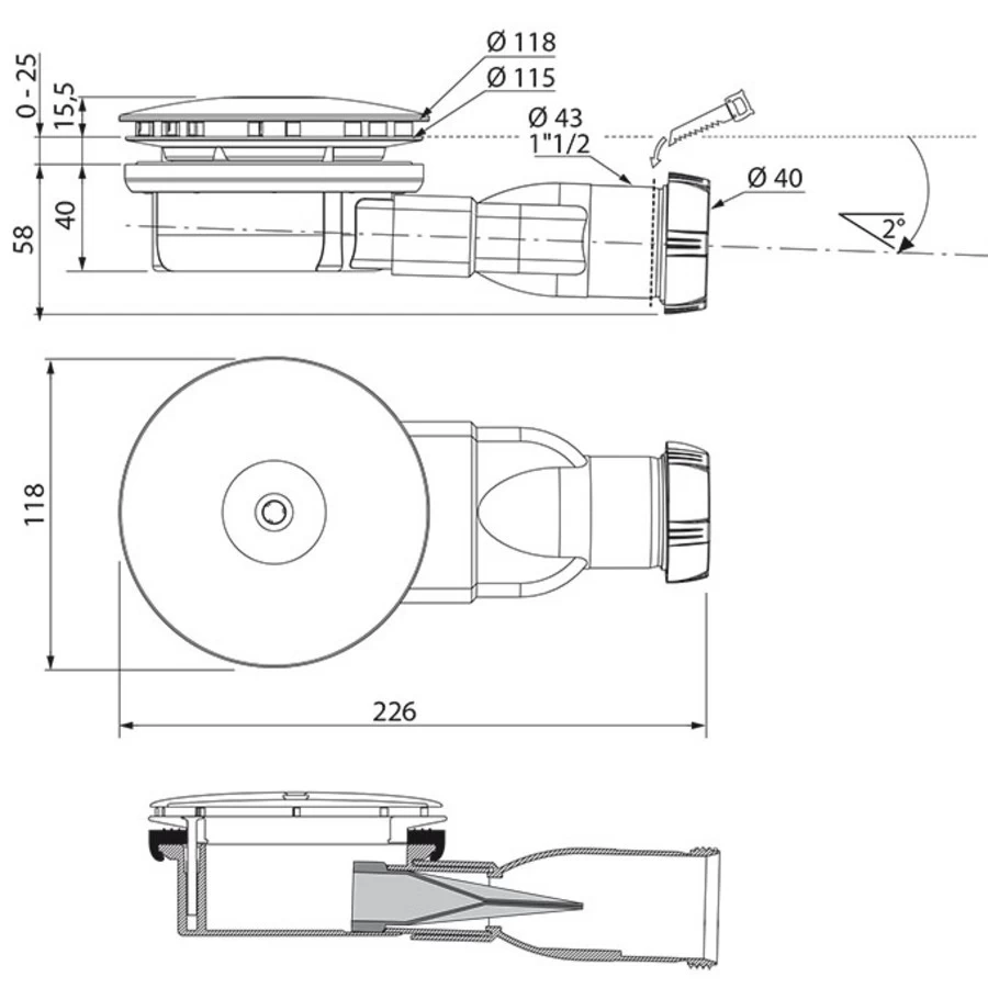 Wirquin Afvoer Douchebak Black Touch D90mm – Zeer Plat – 24L/min