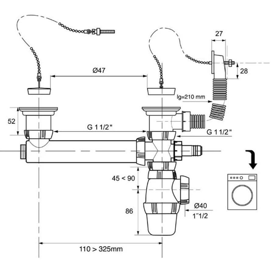 Wirquin Spoeltafelset Voor 2 Bakken 2 Pluggen Met Overloop – Vaatwasafvoer